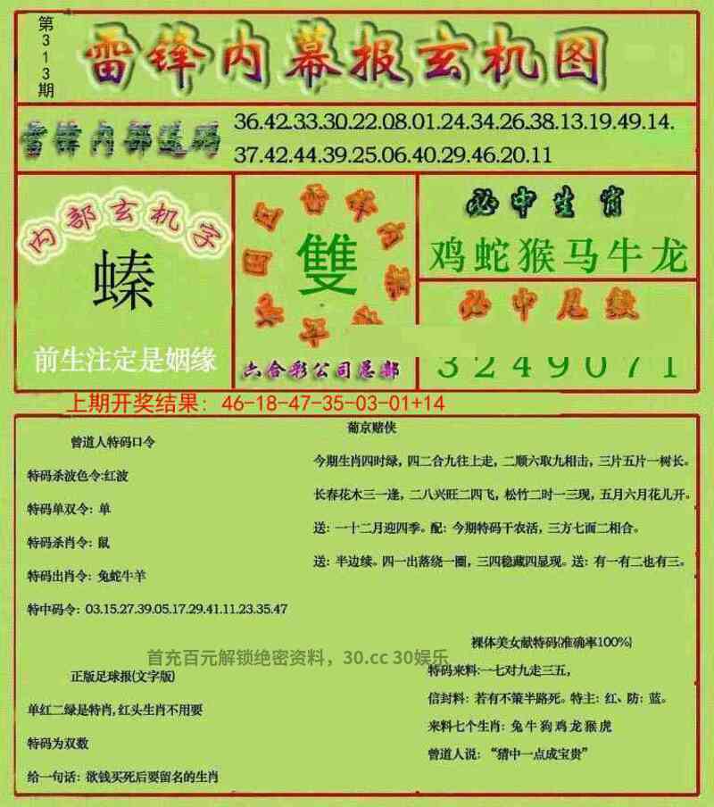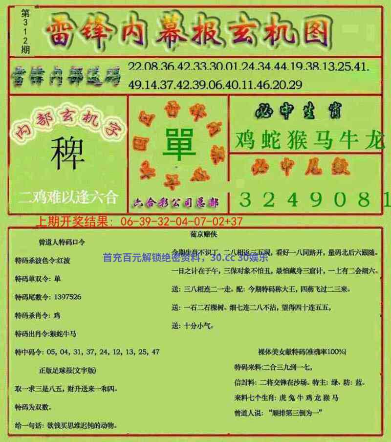 | 306期:男女两肖『男肖+鸡蛇』开:牛17准 |