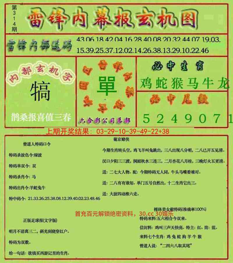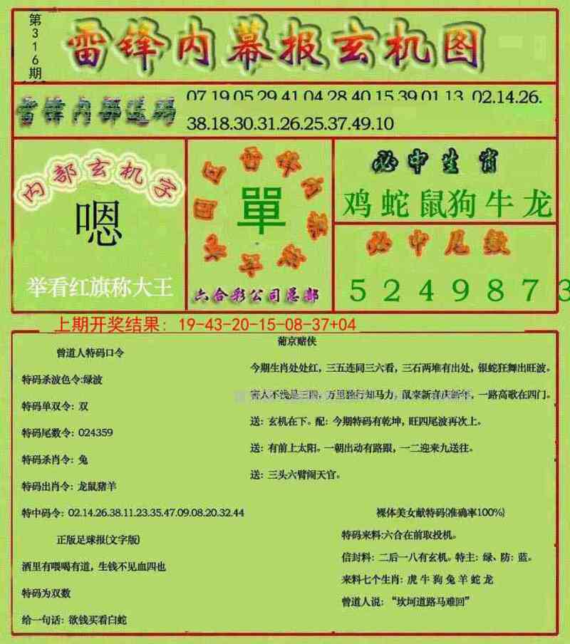 | 315期:家野两肖〖家禽+兔鼠〗开:虎04错 |
